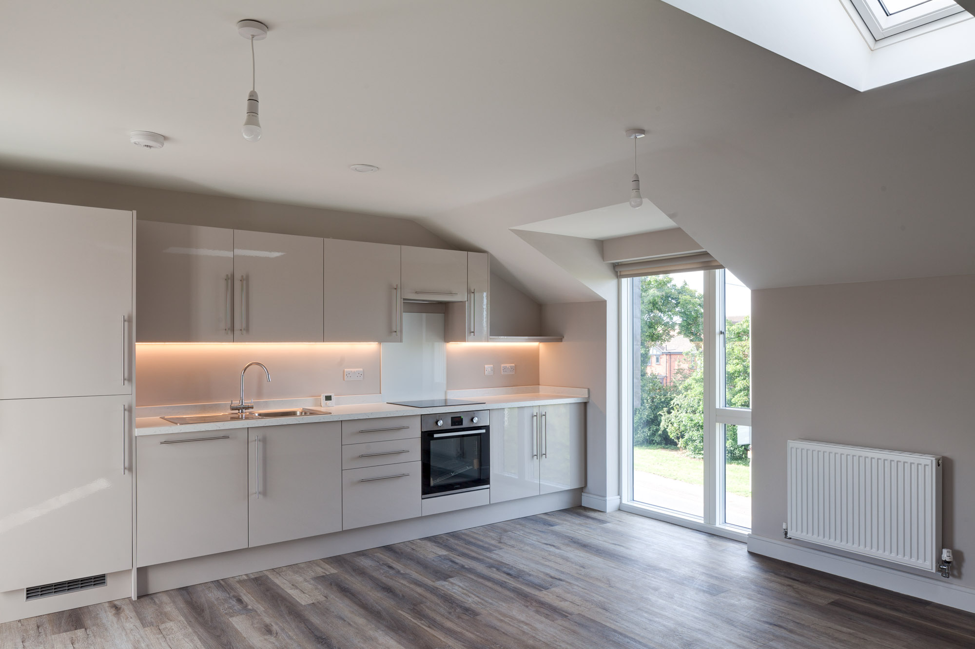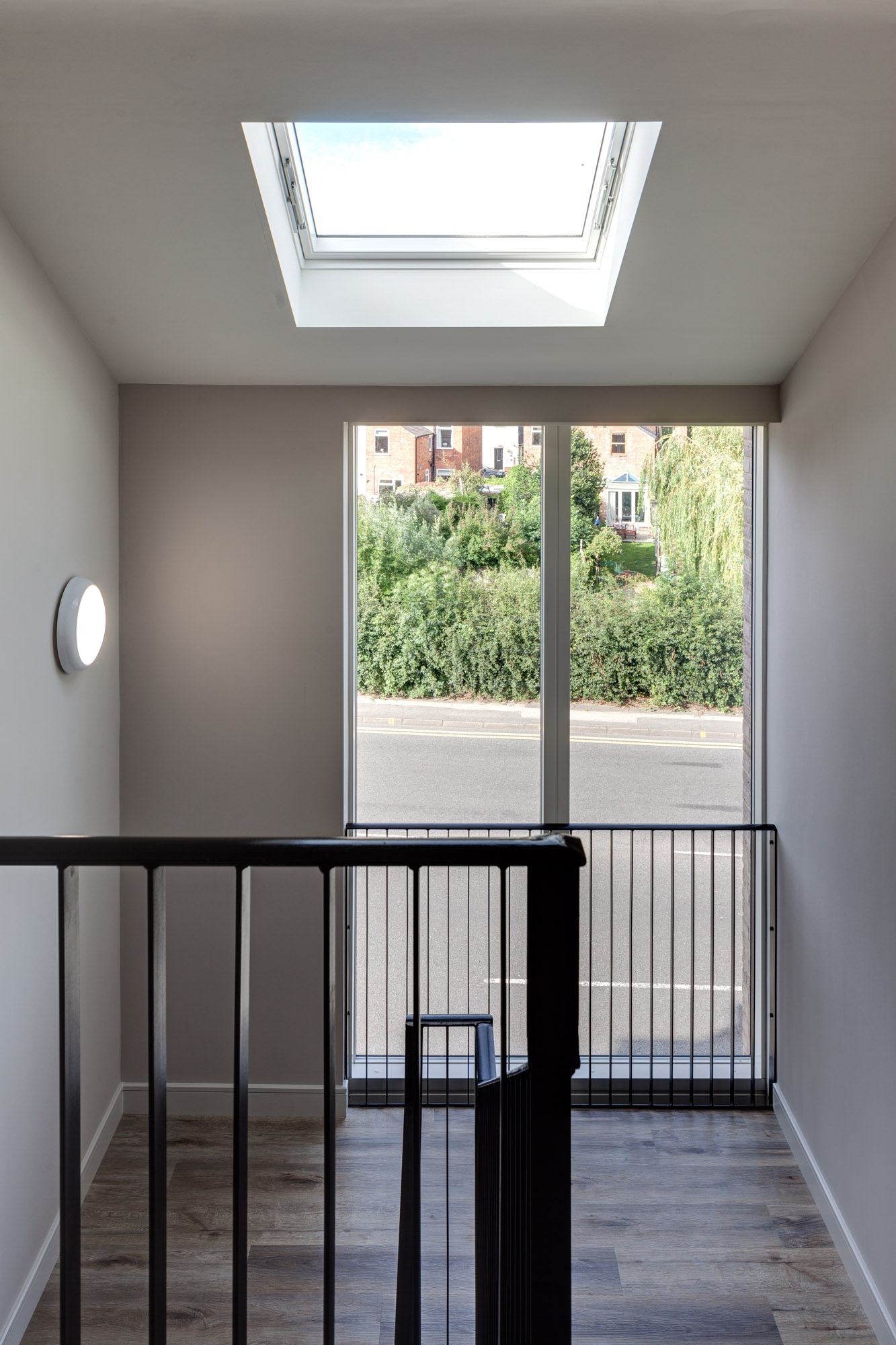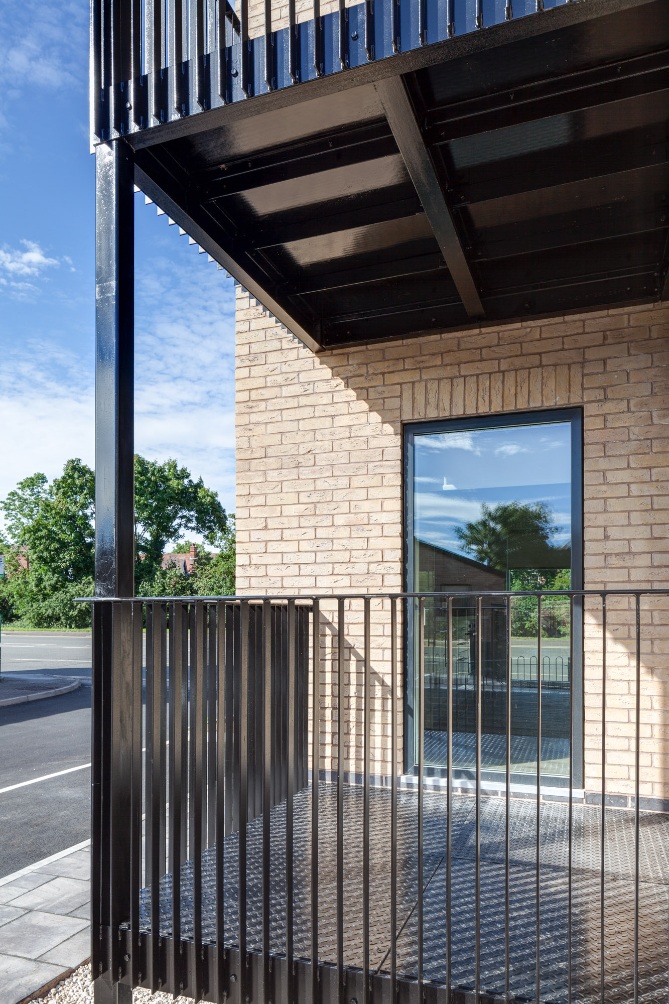 To the road frontage a 3-storey building houses 6no. 2-bedroom apartments around a central feature stairwell. The apartments are designed around south facing balconies which can be accessed from both the living and master bedrooms. A single storey element along Hardwicke Grove mediates in scale between the new block and the houses to the south and provides a single one bedroom flat.